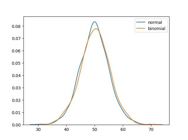 The main difference is that normal distribution is continous whereas binomial is discrete, but if there are enough data points it will be quite similar to normal distribution with certain loc and scale.