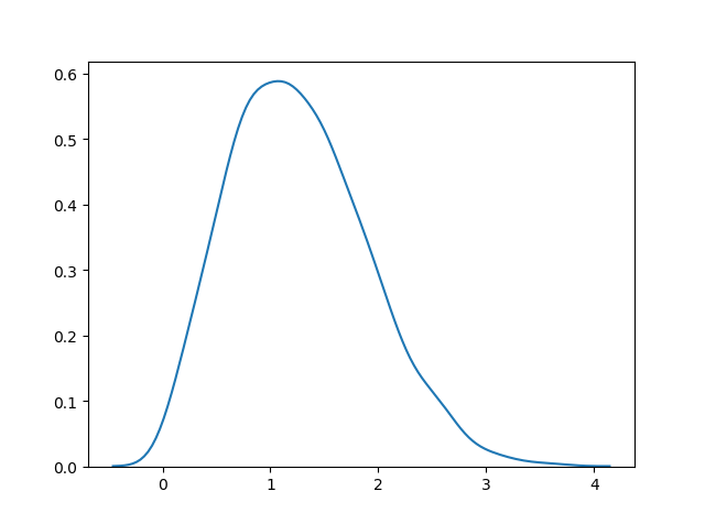 sns.distplot(random.rayleigh(size=1000), hist=False)
